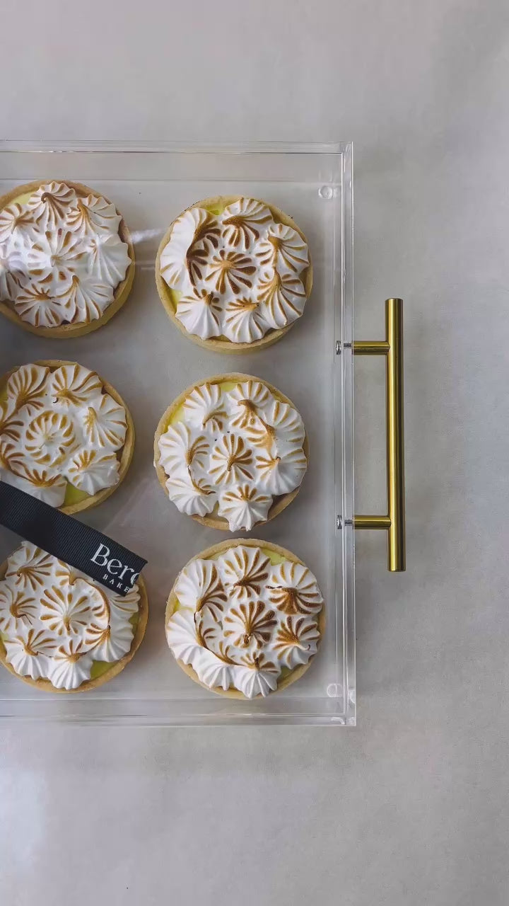 12 Lemon Meringue Tarts in Gifted Acrylic Tray and Cover