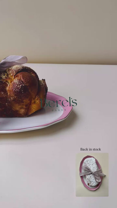 This beautiful platter—finished with soft pink detailing and tied with a charming pink bow—comes paired with our heavenly Cheese Babka for a gift that feels both thoughtful and luxurious. Perfect for a baby kiddush, a hostess gift, or anytime you want to make someone feel truly appreciated. Wrapped beautifully and ready to impress.